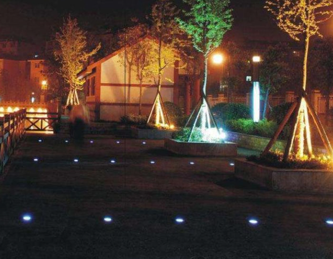 景觀燈可以在夜間突出主要景觀,與周圍環(huán)境形成虛實關(guān)系,豐富夜間景觀水平。