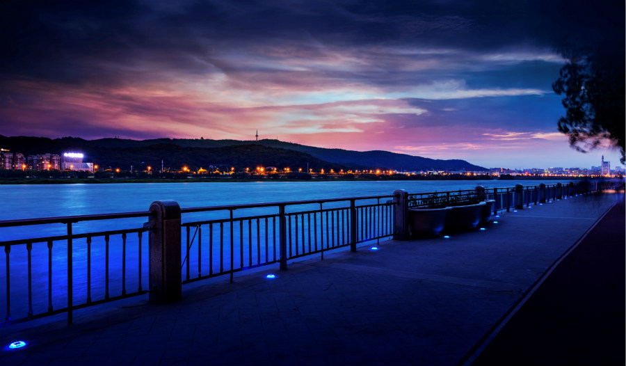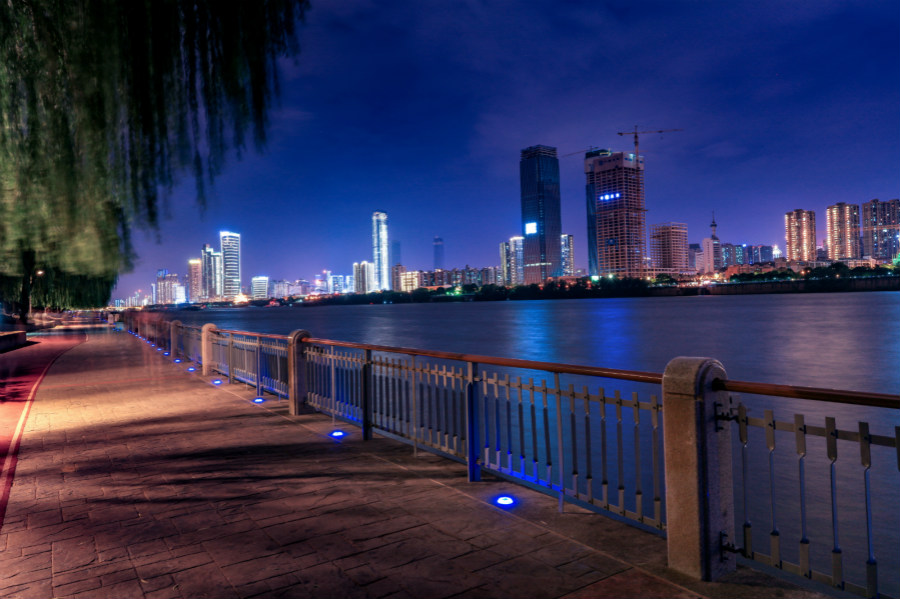 城市景觀太陽能自發光路邊案例,在橘子洲環島及毛主席頭像附近均有鋪設,為市民散步休閑提供保障及視覺美感。